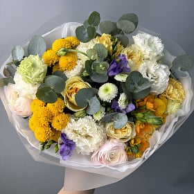 Здравствуйте. Букет получился очень красивый, но пришёл с большим опозданием и вялым. Видимо долго был без воды. После звонка прошло пол дня. Моя мама была вынуждена сидеть дома и ждать. Меняйте курьера.